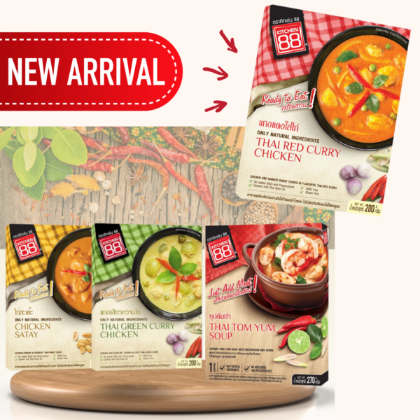 - 綠咖哩雞:雞肉、椰子萃取物、茄子、水、辣椒、魚露(鯷魚、鹽)、南薑、糖、大蒜、香茅、薑、紅蔥、玄米油、香辛料(胡荽粉、馬芹粉、薑黃)、麻瘋柑葉、鹽、羅勒葉、蝦醬(蝦、鹽)
